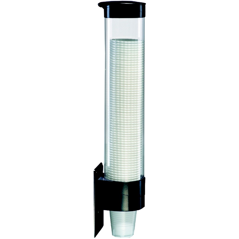 Ёмкость для стаканчиков изготовлена из прозрачного пластика, а крышка и крепёжная часть из пластика чёрного цвета.